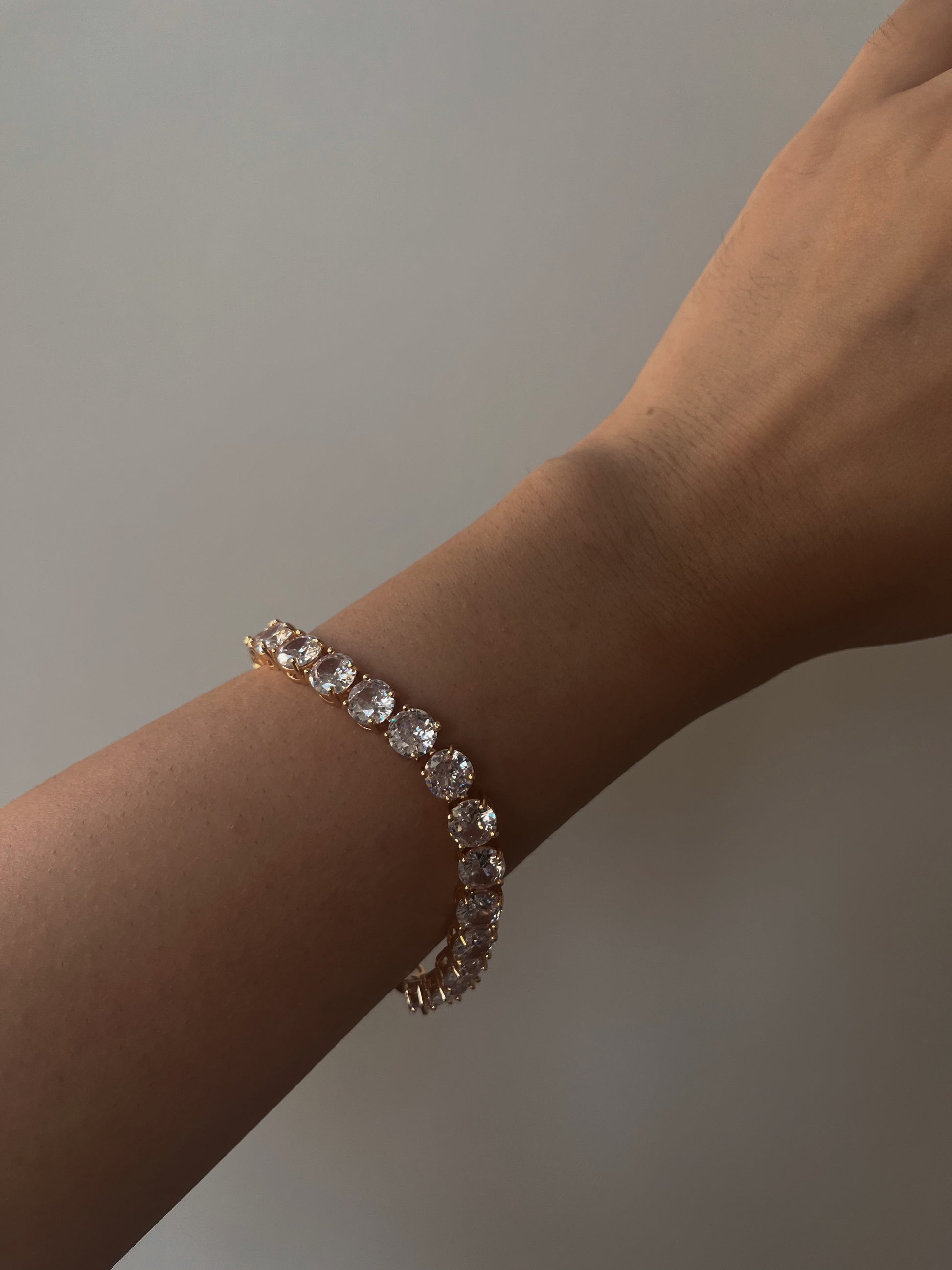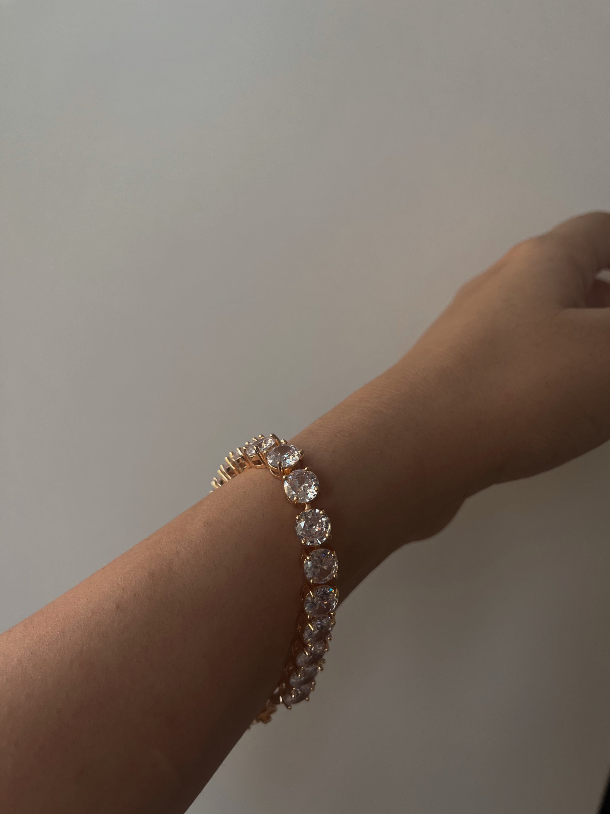 A timeless piece that exudes sophistication and glamour. Featuring an elegant row of luminous round-cut crystals, this bracelet is a dazzling addition to any jewelry collection.