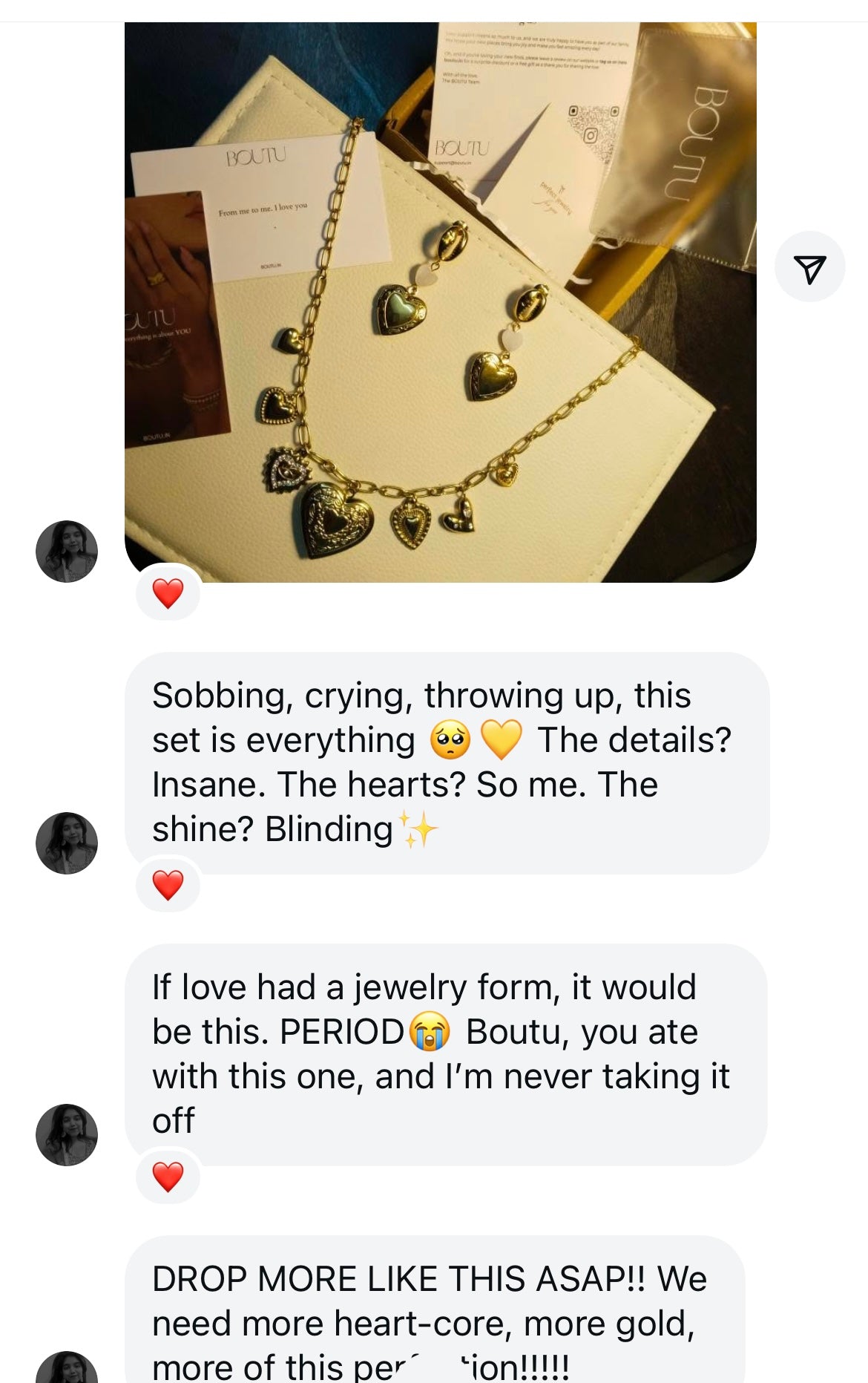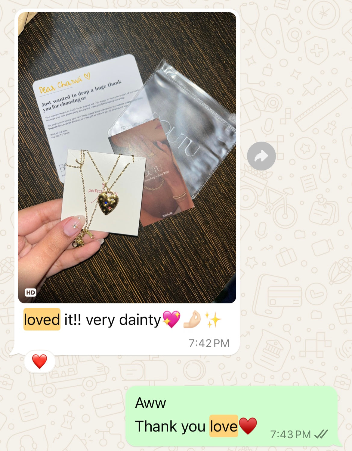 ~ Make sure to keep the jewellery away from sharp objects and friction as it may scratch the jewellery and scrape off the plating.